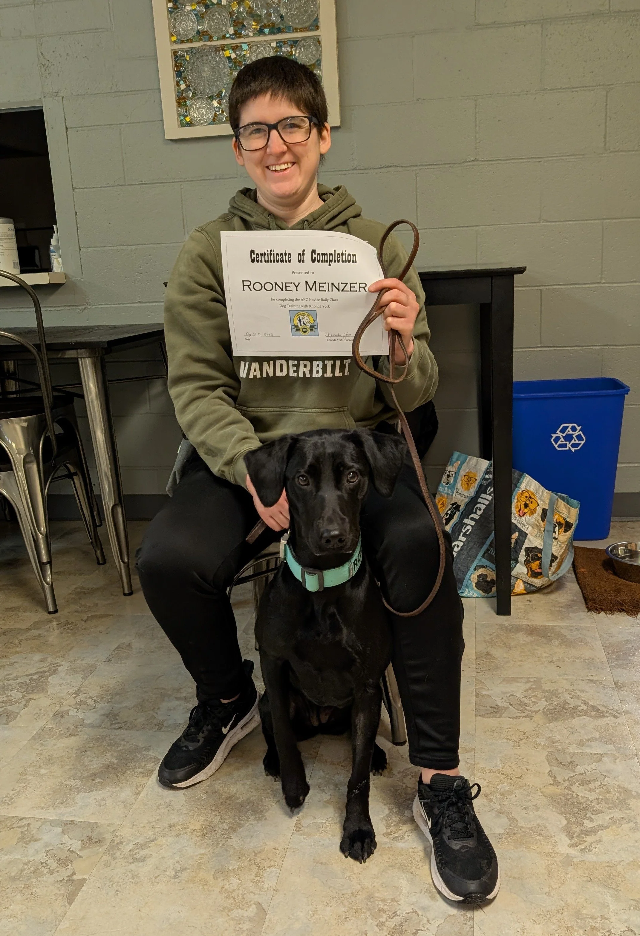 Dogs must have completed an Intermediate Class prior to participating in Rally Novice. Rally is a dog sport that entails the dog and handler working together to navigate a series of skills/obedience cues. This class will introduce you to Rally. Novice is the first level. Cost: $135 for a 6-week session. For more information: https://www.akc.org/sports/rally/